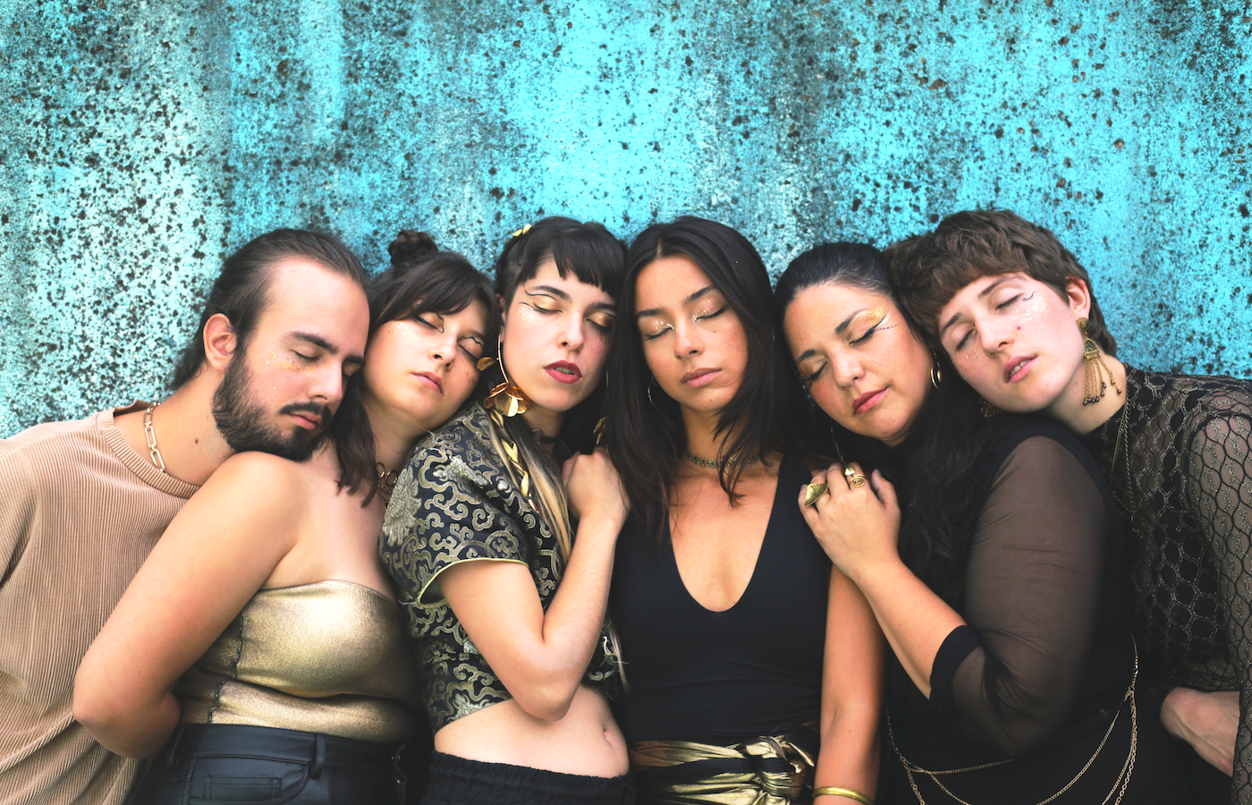 Auf der Bühne erschaffen sechs Musiker*innen eine Klangwelt, in der akustische und elektronische Instrumente, Rap, vielstimmige Gesänge und Einflüsse von Jazz bis Techno aufeinandertreffen. Dabei erschaffen sie ein aufregendes Spannungsfeld zwischen Tradition und Innovation, in dem spielerische Leichtigkeit und tiefgründige Botschaften miteinander tanzen.